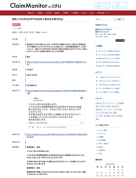 - (疑義言説収集システム「FCC」についてはFIJウェブサイトのこちらのページをご覧ください。)