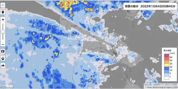 気象レーダーが山に遮られ、もともと表示されていない部分のため、ミサイルは関係がない。これは、函館地方気象台のレーダーが、設置されている七飯町横津岳の山頂部分に一部遮られていることで起きている現象だ(NHK、2022年8月26日)。