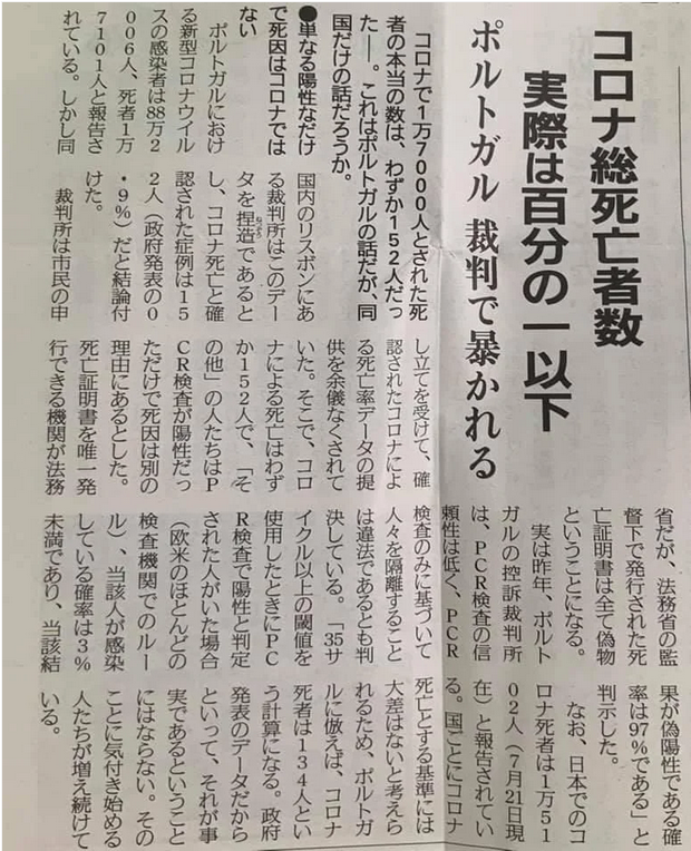「ポルトガル・リスボンの裁判所 1万7101人と発表されていたコロナ死者を152人と認定」は誤り【情報検証JP】(2022.1.20)