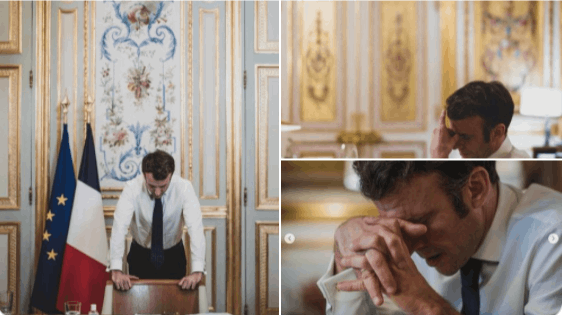 プーチン大統領と会談後のマクロン仏大統領の様子(画像)