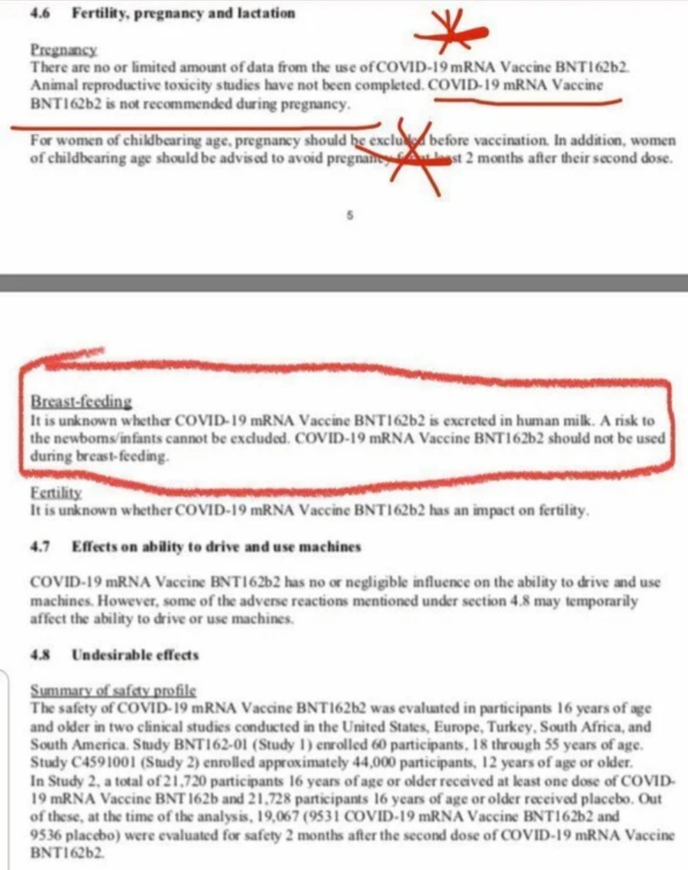 この資料はイギリスの医薬品・医療製品規制庁が2020年に公開した文書で、「ファイザーが新たに公開」したわけではない。文書は何度か改訂され、妊婦や乳児へのリスクに関する記述も現在では変更されている。