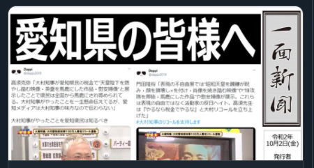 ファクトチェック対象 大村知事リコールへの運動妨害は公選法違反2020.10.2 Twitter投稿ファクトチェック結果公職選挙法ではなく、地方自治法違反の疑い「大村知事リコールへの運動妨害は公選法違反」は誤り。Dappiが2020年10月2日に投稿【Wasegg】(2022.3.14) Wasegg#「誤り」#ClaimMonitor覚知#Wasegg#あいちトリエンナーレ#大村知事#画像・動画情報を提供する活動を支援する