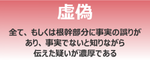 - ファクトチェックの結果、対象言説の真偽、正確性についての判定、評価を表すことを「レーティング」といいます。